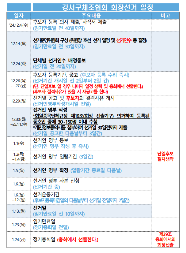 강서구체조협회 선거일정 안내